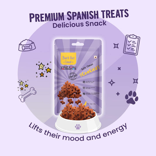 BARK OUT LOUD All Life Stages Coatiez Soft Chews Dog Granule Treats For Shiny Skin And Coat-Enriched With Omega Fatty Acids, Prebiotics, And Rich In Chicken Protein-100Gm