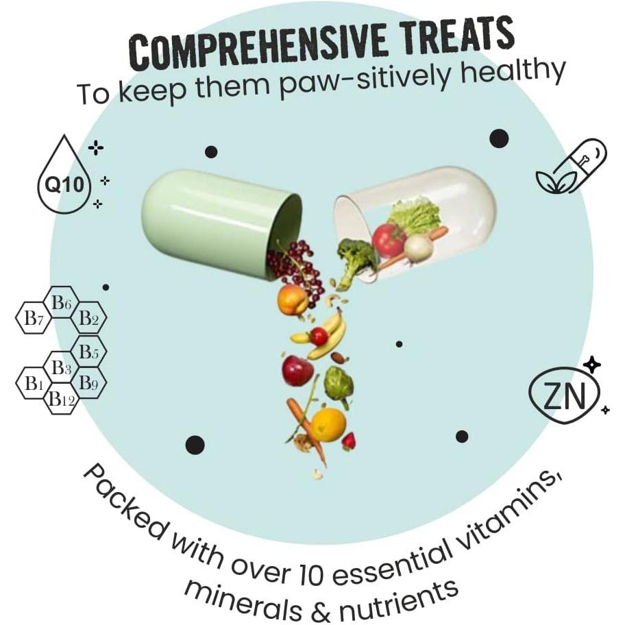 - Vitamin-enriched Immunity Boosters: Packed with the complete range of essential vitamins. From complex energy boosting Ubiquinol (CoQ10) to Vitamin B2 & B6 that promotes digestion and Vitamins A & E, Zinc for a stronger immune system. It's the paw-fect supplement to your pet's diet