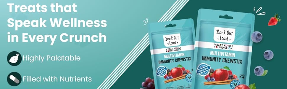 - Mega Dose of Wellness: With the goodness of Omega fatty acids obtained from fish oil, Bark Out Loud Immunity Chewstix also promotes supple skin, a glowing coat and healthy joints