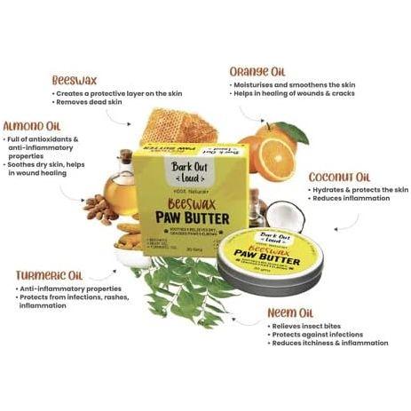 - PAW PROTECTION FOR DOGS AND CATS: Bark Out Loud’s Paw Butter makes a great summer or winter paw pad protection for pets! This paw balm moisturizes, protects and soothes your pet’s sensitive paws and elbows. Perfect for dogs and cats suffering from itchy, dry, rough, cracked, and damaged pads and elbows. It’s all-natural works effectively and is gentle on the skin.